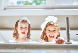 Y si en casa hay niños ahorraremos tiempo y agua si bañamos a los niños juntos o con los padres. A ellos les encantará la idea.
