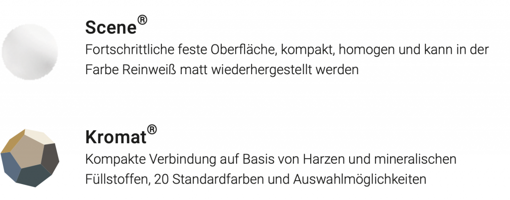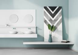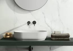 Die Kollektion kombiniert die glatte Scene®-Oberfläche mit den Zement-, Schiefer- und Microtex®-Texturen von Kromat®, wodurch sich die dekorativen Möglichkeiten vervielfachen. Eine Vielzahl an Farben und Accessoires wie Regale, Fächer, Schubladen oder Handtuchhalter u. a. stehen zur Verfügung. Die natürlichen, eleganten, angenehmen und sehr widerstandsfähigen Oberflächen spielen die Hauptrolle der Artop-Serie, darüber hinaus bietet sie eine große Vielfalt an Formaten und Optionen.