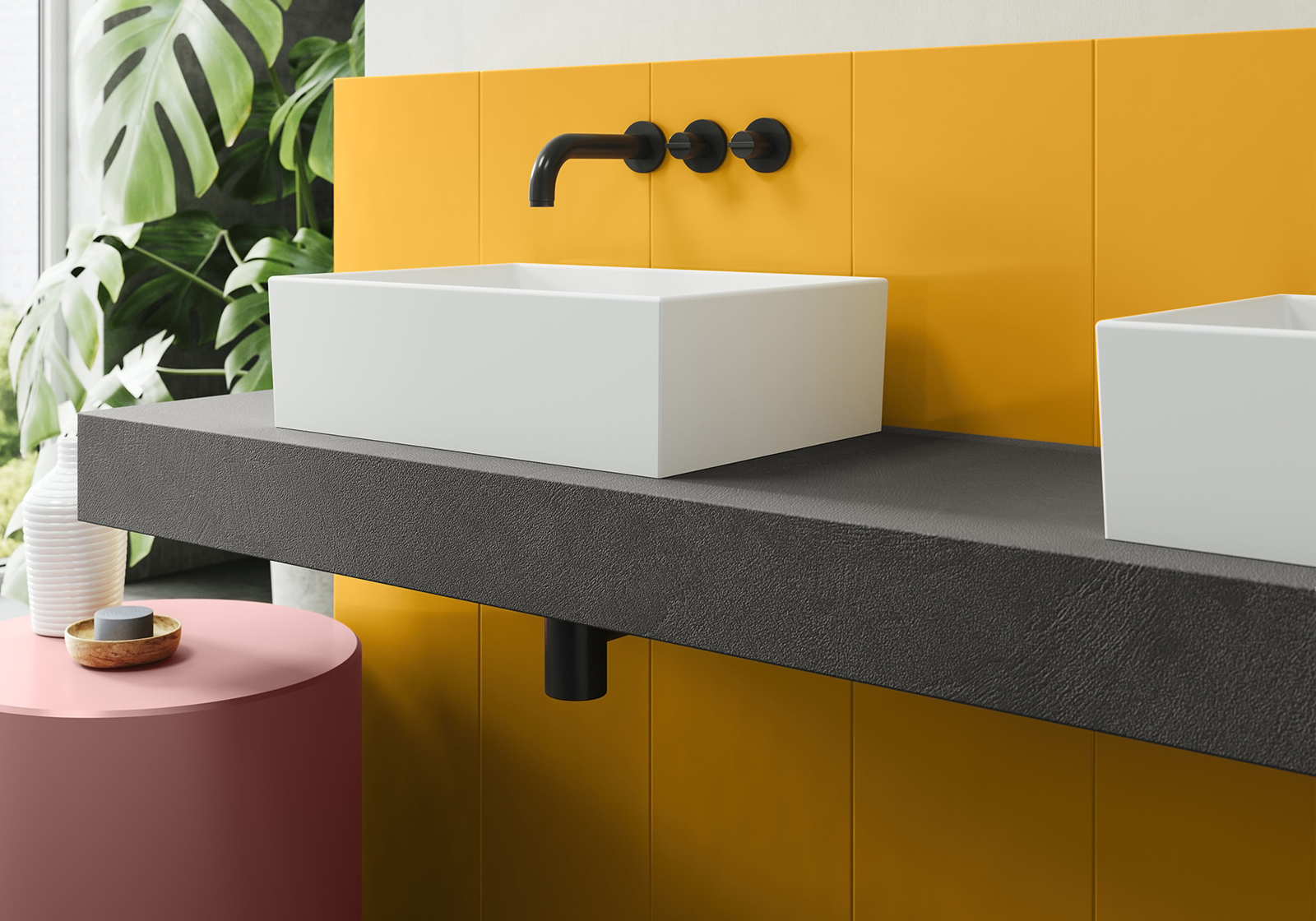 Die Kollektion kombiniert die glatte Scene®-Oberfläche mit den Zement-, Schiefer- und Microtex®-Texturen von Kromat®, wodurch sich die dekorativen Möglichkeiten vervielfachen. Eine Vielzahl an Farben und Accessoires wie Regale, Fächer, Schubladen oder Handtuchhalter u. a. stehen zur Verfügung. Die natürlichen, eleganten, angenehmen und sehr widerstandsfähigen Oberflächen spielen die Hauptrolle der Artop-Serie, darüber hinaus bietet sie eine große Vielfalt an Formaten und Optionen.