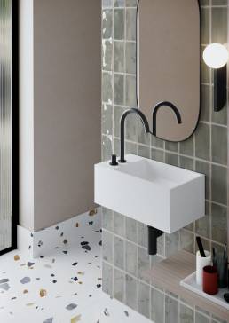 Y no todos los baños tienen grandes dimensiones. Por ello, en los stands también hemos podido disfrutar de Guest, la opción perfecta para los baños pequeños, con una gran ampliación en formas y colores, acompañados de la posibilidad de añadir una estructura que facilita su ubicación.