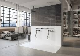 Un complément parfait pour la zone de douche. Grâce à leur design sobre et pratique, les panneaux avec niche intégrée sont un élément de rangement idéal pour nos produits d’hygiène et pour les compléments permettant ainsi d’avoir un espace douche organisé. Il existe aussi la possibilité d’y intégrer la robinetterie. Fabriqués en Scene solid surface, leur couleur blanc pur s’assortit facilement avec le reste des éléments de la salle de bain.