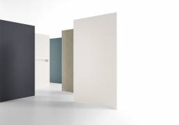Panneau mural fabriqué en Scene solid surface et en Kromat, matériaux compacts à base de résine et de charges minérales. Grande offre de dimensions avec des formats jusqu’à 120 cm de largeur et 240 cm de longueur, possibilité de produit sur mesure, formes spéciales et autres options disponibles. Large gamme de couleurs standards en finition mate et possibilités de couleurs Specials.