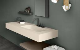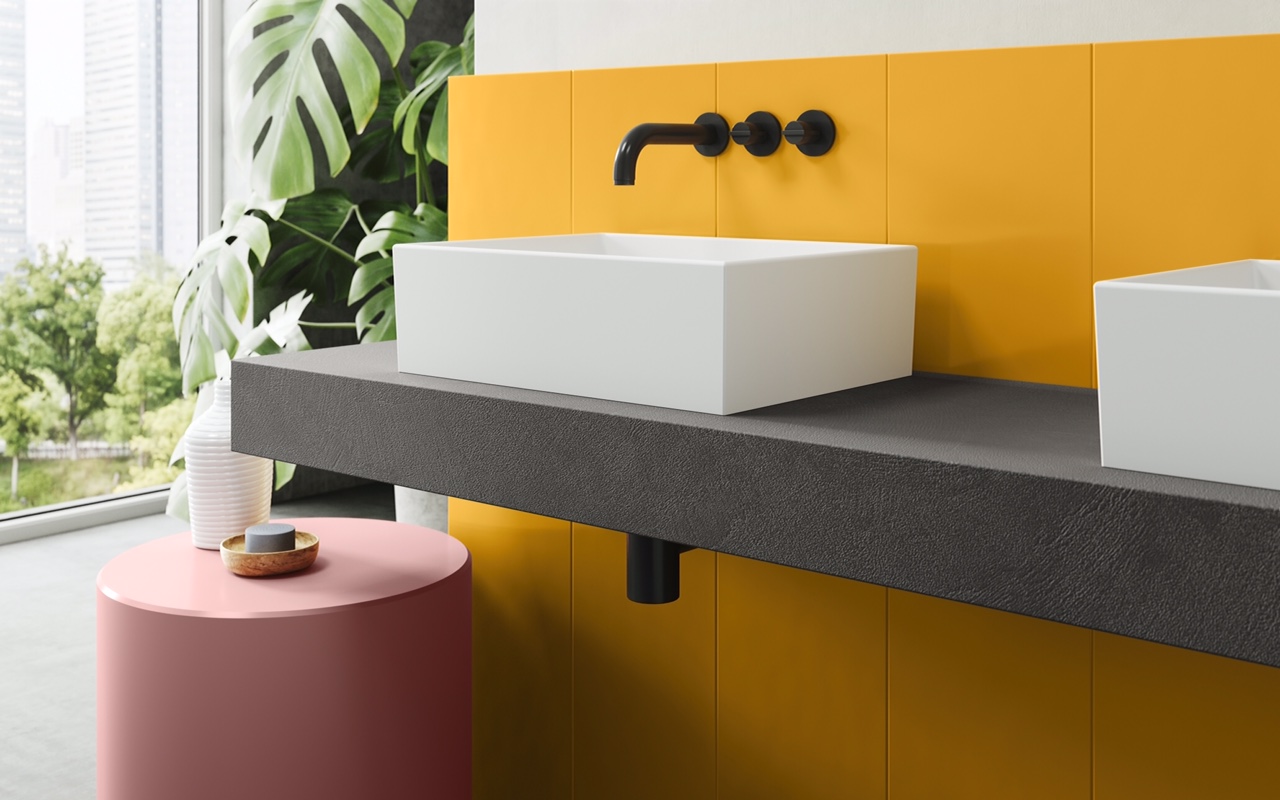 «Microtex™ introduce 13 colores estándar y la posibilidad de abarcar la carta RAL y NCS, ofreciendo una alta personalización a los creadores de espacios de baño.»