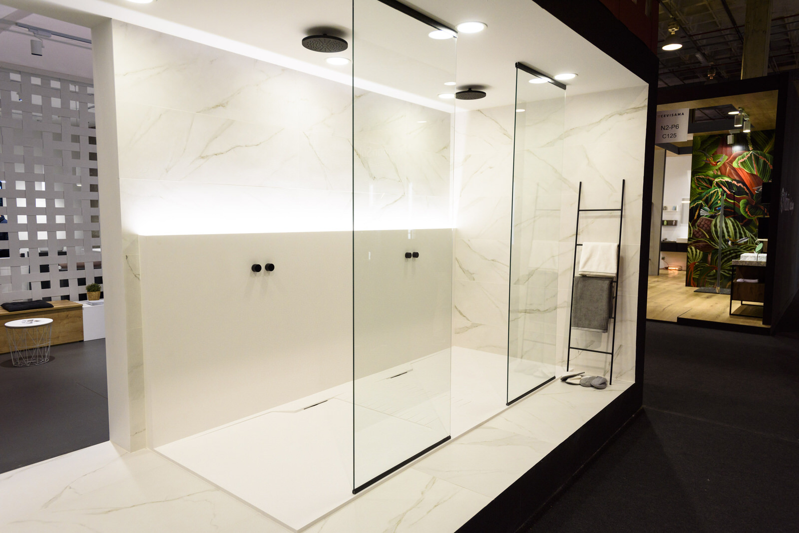 Los ambientes de Hidrobox fueron recreados como “auténticas estancias de baño” siguiendo las últimas tendencias en decoración e interiorismo y aportando soluciones técnicas.