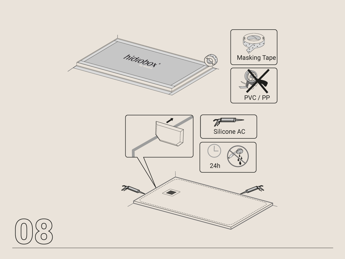 En Hidrobox, acompañamos todos nuestros platos de ducha con un manual de instalación específico para cada uno de ellos. Además, incluimos la información detallada en una hoja informativa que, gracias a su localización en el embalaje, el instalador será lo primero que se encuentre al desembalar el producto.