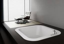 La esencia del diseño Alfa materializado en ba-ñeras con encimera integrada para encastre. Realizadas en Scene® cuenta con diferentes formatos, suministrables a medida, e inclusive la realización de formas singulares “Free Design”.