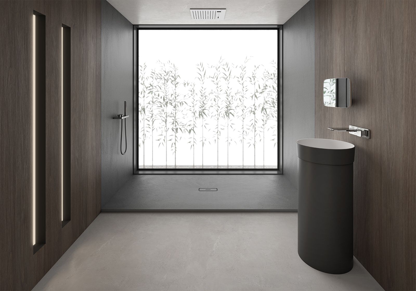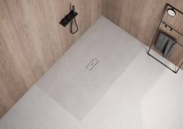 Arq se distingue por su atractivo aire industrial, por la amplia variedad de formatos que ofrece y por su desagüe lineal central siempre del mismo color que el plato. Las características excepcionales del material Kromat® garantizan la calidad del producto, otorgándole amplias posibilidades de suministro a medida y formas especiales. Caracterizado por tener una superficie continua con la apariencia de una aplicación de cemento, favorecida al contar con una tapa con el mismo acabado. Los trazos artesanales que se aprecian en la textura representan de forma creativa y artística la aplicación de dicho material. Arq, una apuesta contemporánea para el espacio de ducha