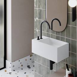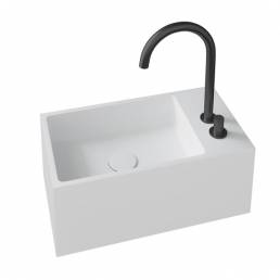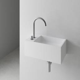 La colección de lavabos Guest ha sido creada para que los baños más pequeños también puedan disfrutar de diseño y funcionabilidad y no renuncien a las últimas tendencias. Disponible en versión mural o sobre encimera, fabricado en Scene® solidSurface, materiales compactos en base resina y cargas minerales. Dos formatos desarrollados: Guest L, desagüe ala izquierda y Guest R, desagüe a la derecha. Superfice lisa y color blanco puro Scene Carta Ral / Ncs ® con posibilidad de color exterior en gama basics, trends y color especial, ral o ncs.