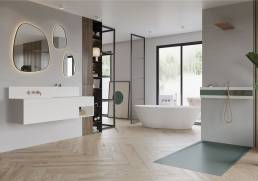 Las tendencias 2022 para el cuarto de baño vienen marcadas por espacios de baño cada vez más amplios e integrados con el resto del hogar generando una armonía conjunta. En este sentido, el cuarto de baño va cobrando importancia, y pasa de ser una estancia de aseo a un lugar de bienestar donde cuidarse, mimarse y relajarse.